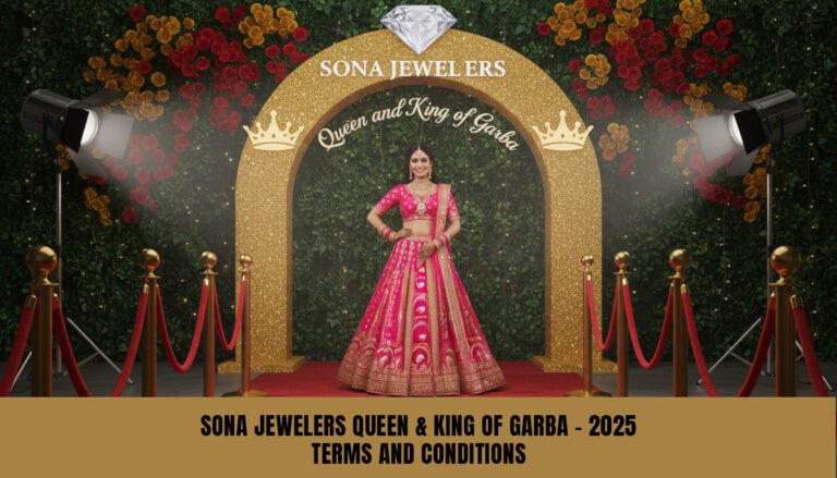 By participating in the Garba King & Queen Photo Booth Contest (“Contest”), you agree to these Terms & Conditions (“Terms”). The Contest is organized and sponsored by Sona Jewelers (“The Promoter”). Participation is free of charge and no purchase is necessary.